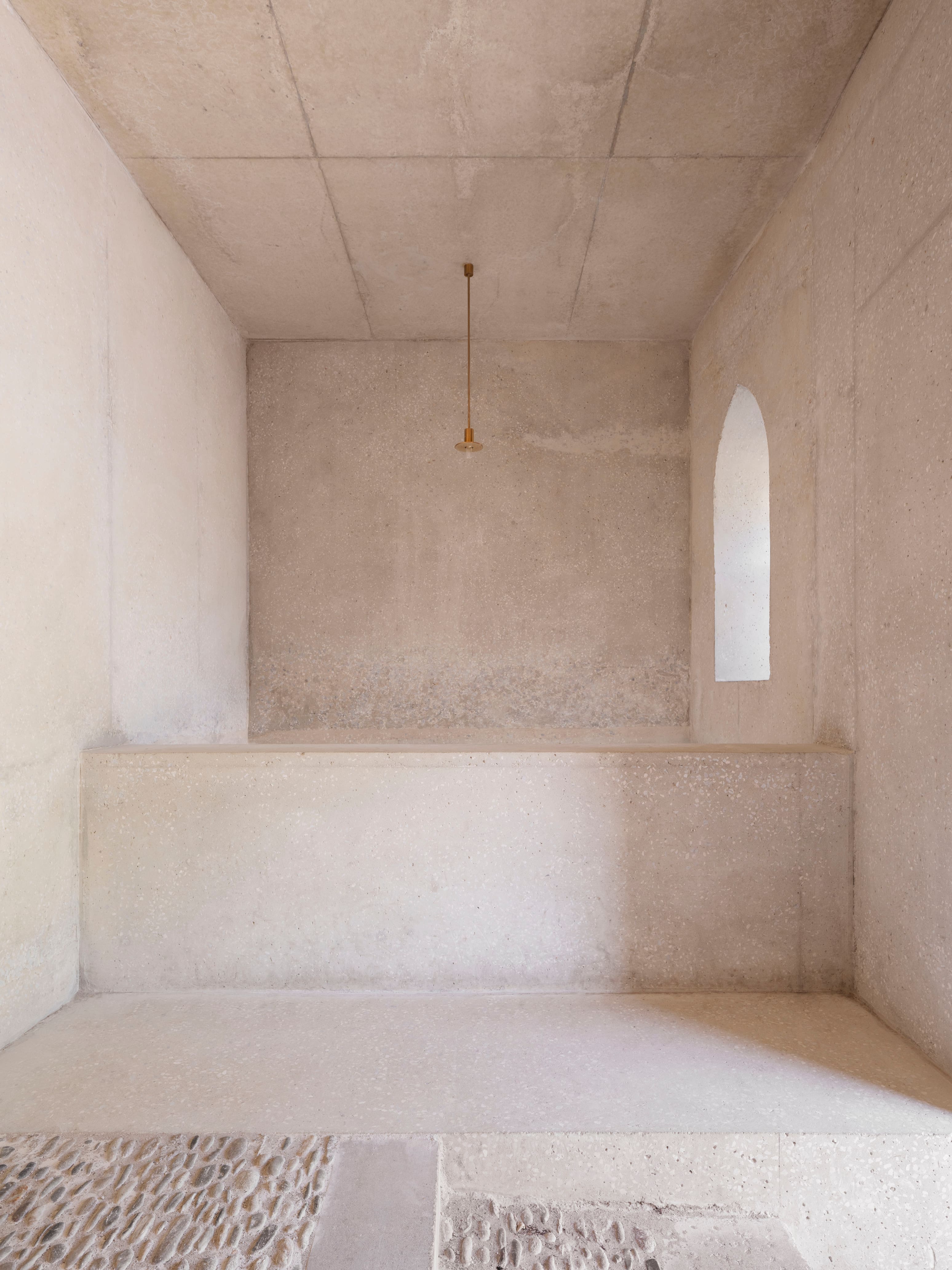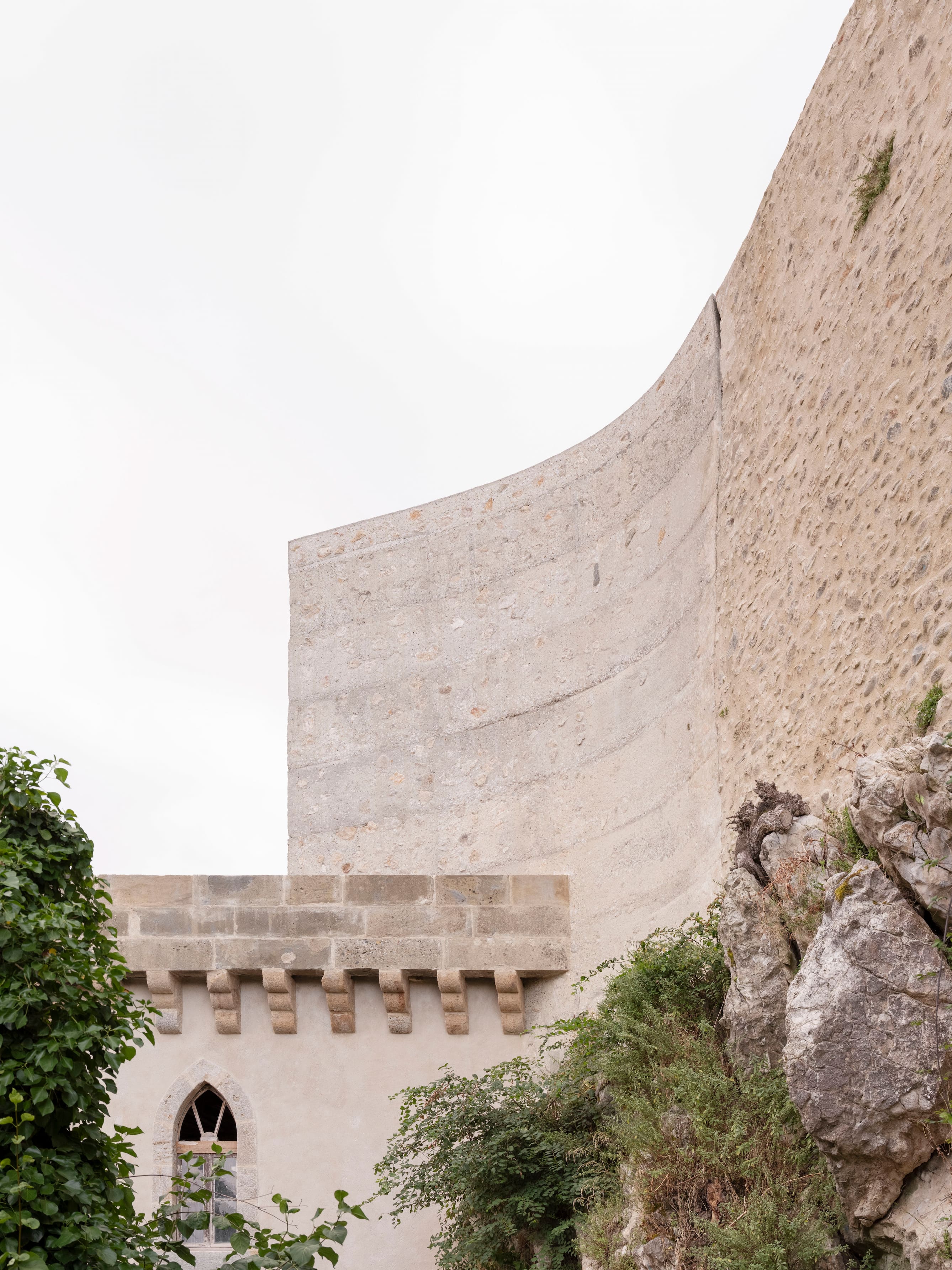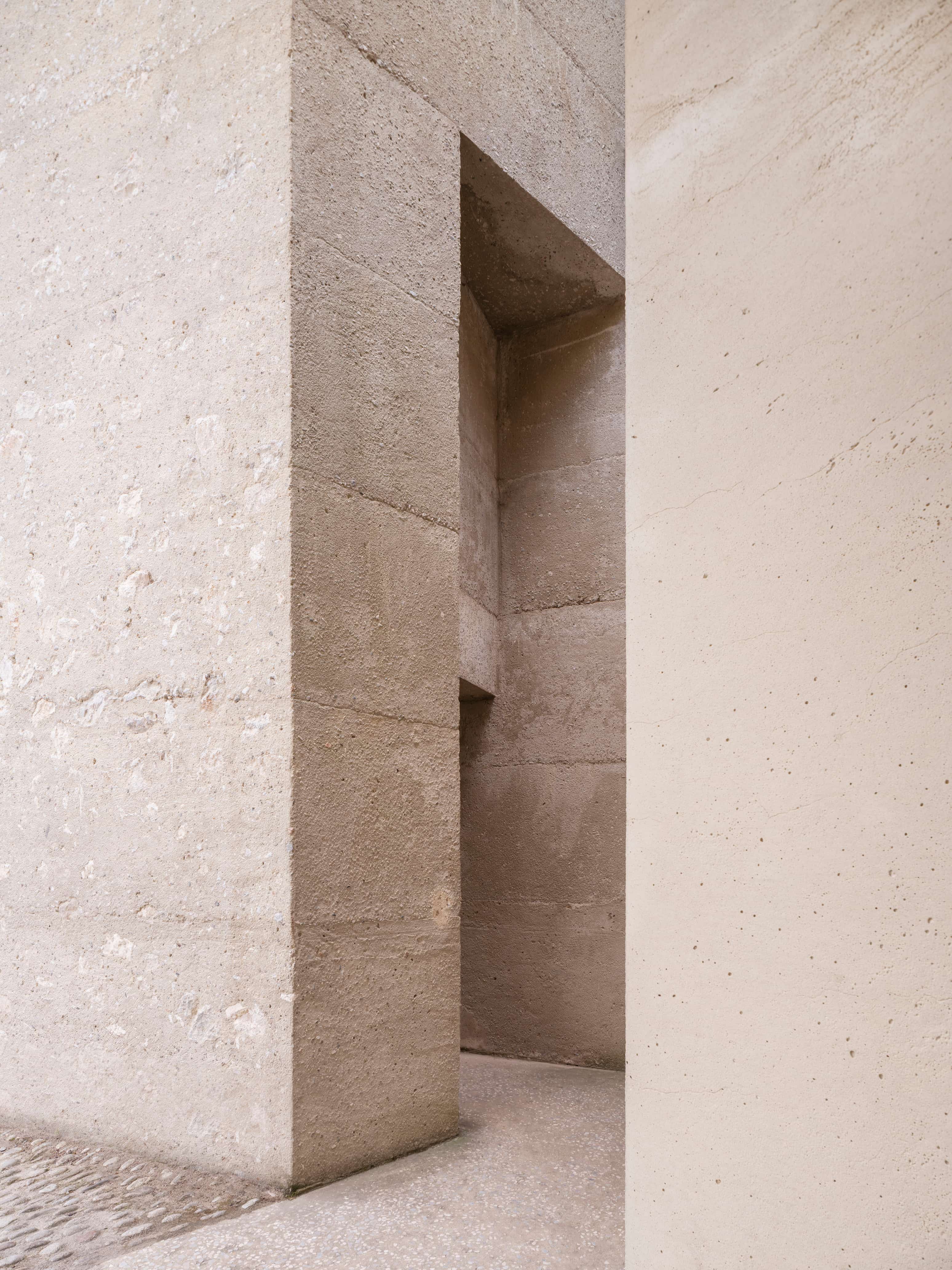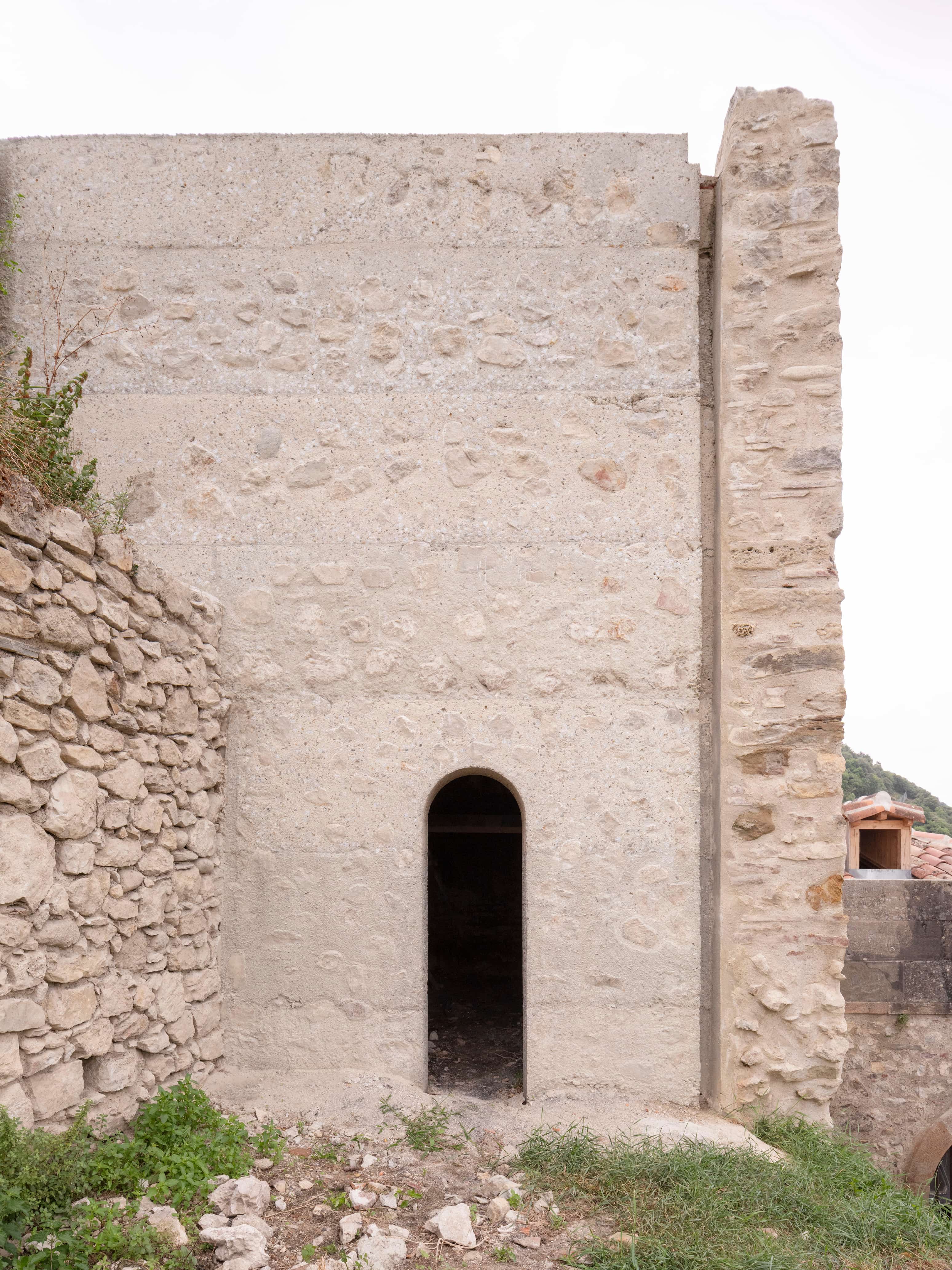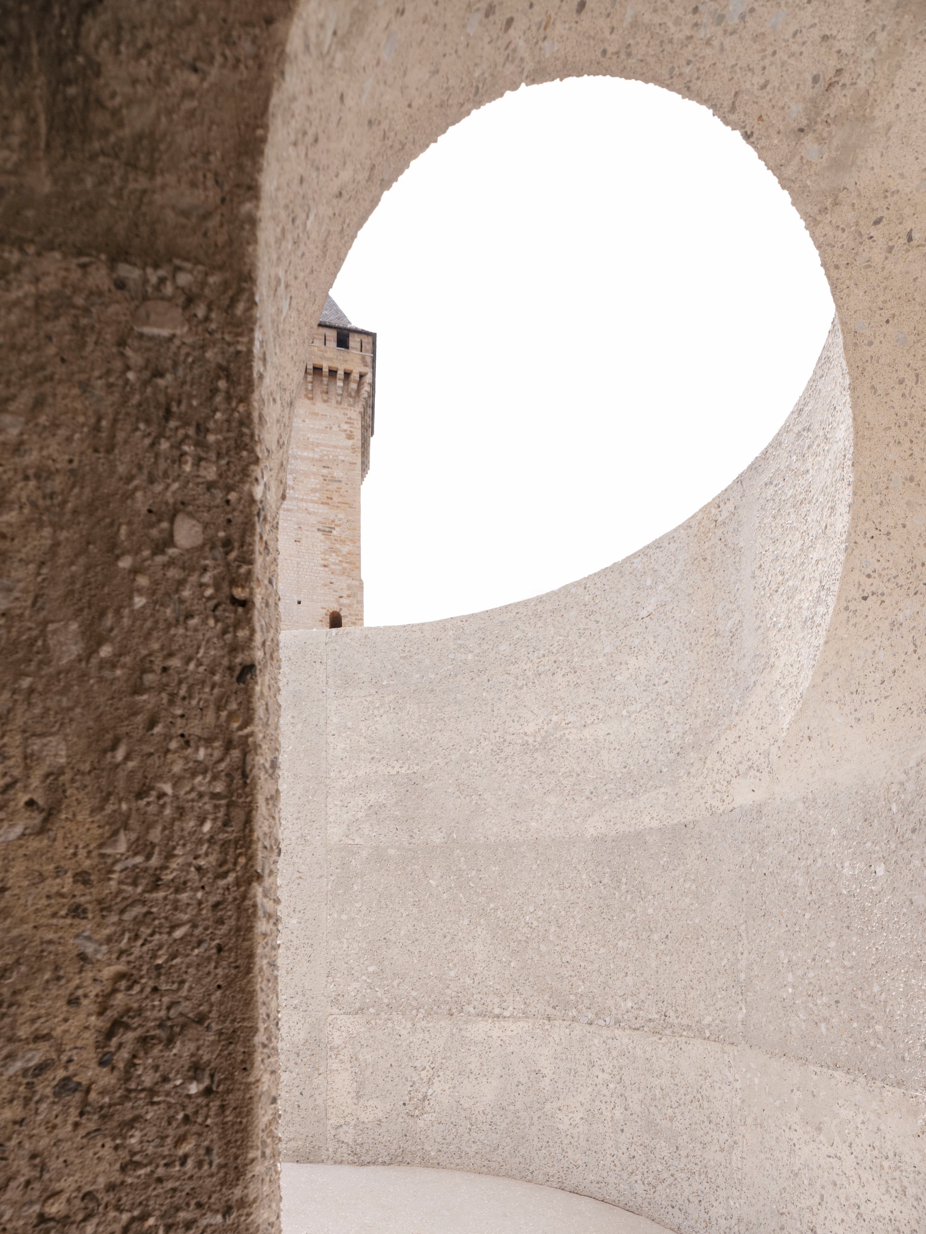 Le traitement et la mise en oeuvre des ouvrages ont pour objectif d’exprimer la matière structurelle, sans parement, dont l’aspect et les surfaces sont travaillés en continuité des maçonneries de pierres existantes.