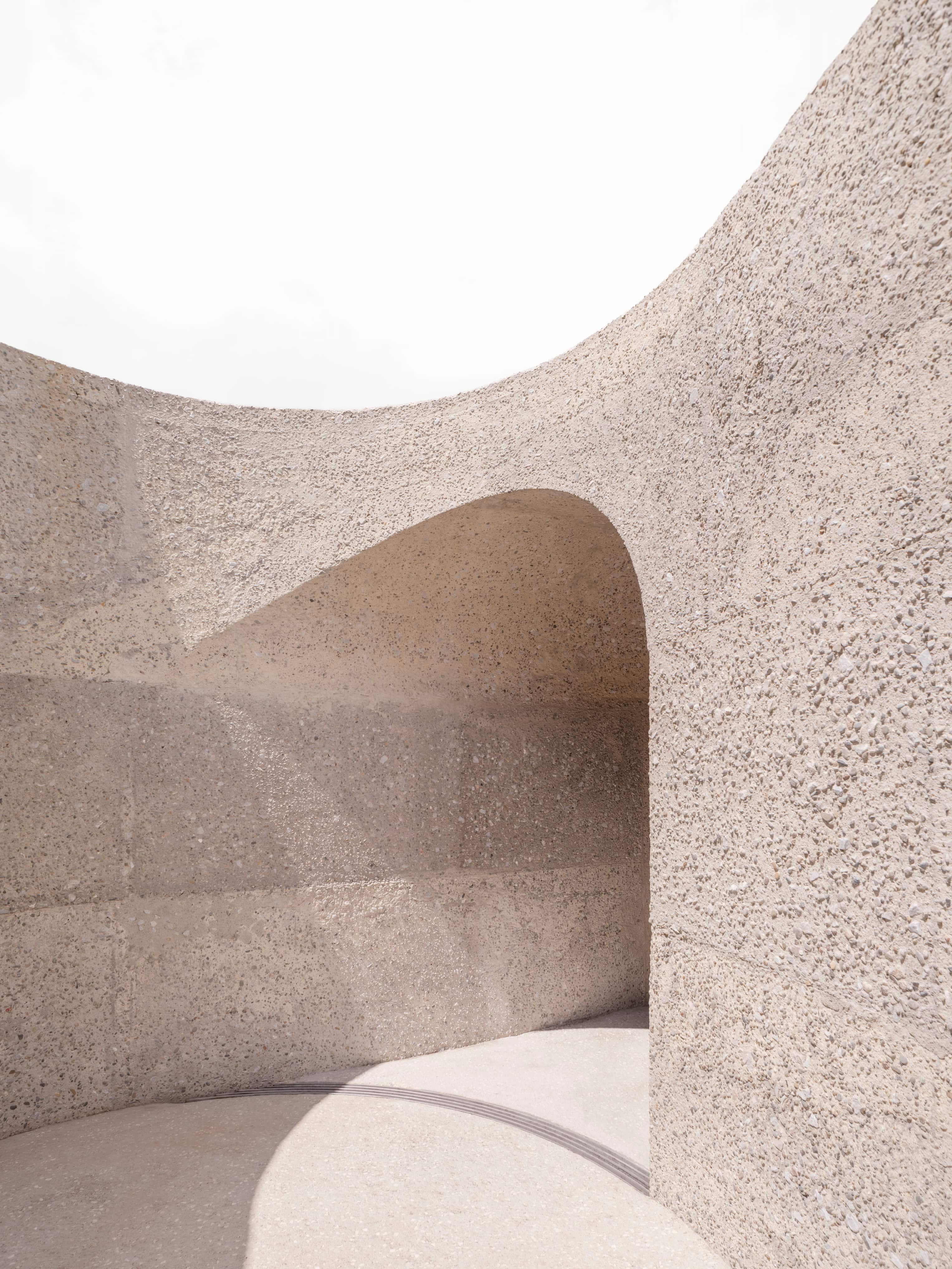 Les matériaux sont ici les garants de l’homogénité et de la pérennité du projet, sans écarter la pluralité des situations et usages. Le béton se décline sous des aspects lisses, rugueux, polis, laissant parfois apparaître agrégats et moellons de pierre.